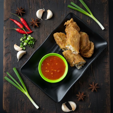 Saus Pendamping Spesial: Disajikan dengan saus cocolan homemade kami yang legendaris: kental, manis, pedas, dan asam segar. Saus ini berfungsi sebagai pasangan sempurna yang akan mengangkat keseluruhan pengalaman rasa Gohyong ke tingkat yang lebih tinggi!