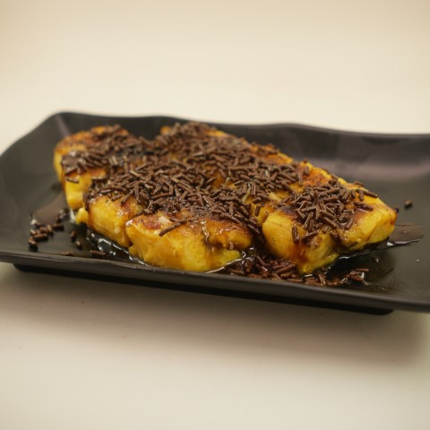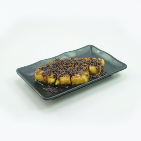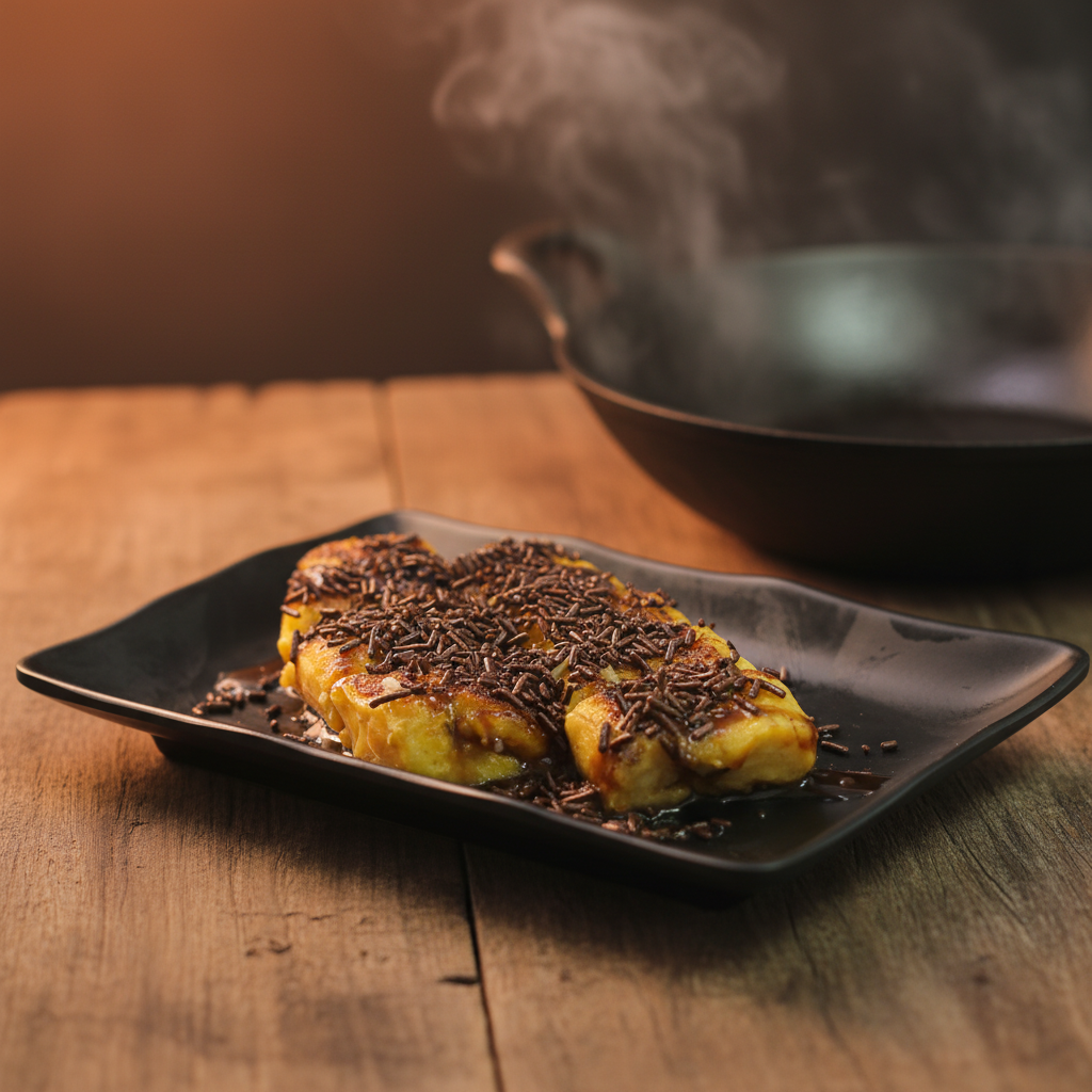 Ledakan Cokelat Premium: Pisang yang hangat disiram melimpah dengan saus cokelat kaya rasa yang meleleh dan lumer. Rasa cokelatnya manis pas, dijamin membuat Anda ketagihan.